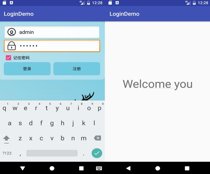 Android存储方式有很多种,在这里所用的存储方式是SharedPreferrences,其采用了Map数据结构来存储数据,以键值的方式存储,可以简单的读取与写入。所以比较适合我们今天做的这个项目。我们来看一下运行图: