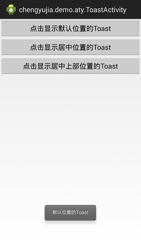 Toast.makeText(this, "默认位置的Toast", Toast.LENGTH_LONG).show();