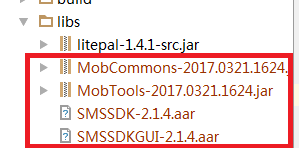 (1)Mob网站上下载SMS对应的SDK,解压出来为图1,打开图1,将其中的文件拷贝到as项目中的libs文件夹下,另外在add as library。