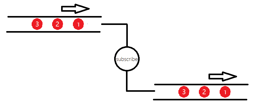 上游朝下游发送数据,经过subscribe使上下游产生关系,即达成订阅.