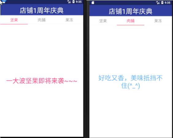 String[] tabs = {"坚果", "肉脯", "果冻"};