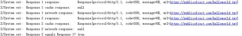 System.out.println("Response 1 cache response: " + response1.cacheResponse());