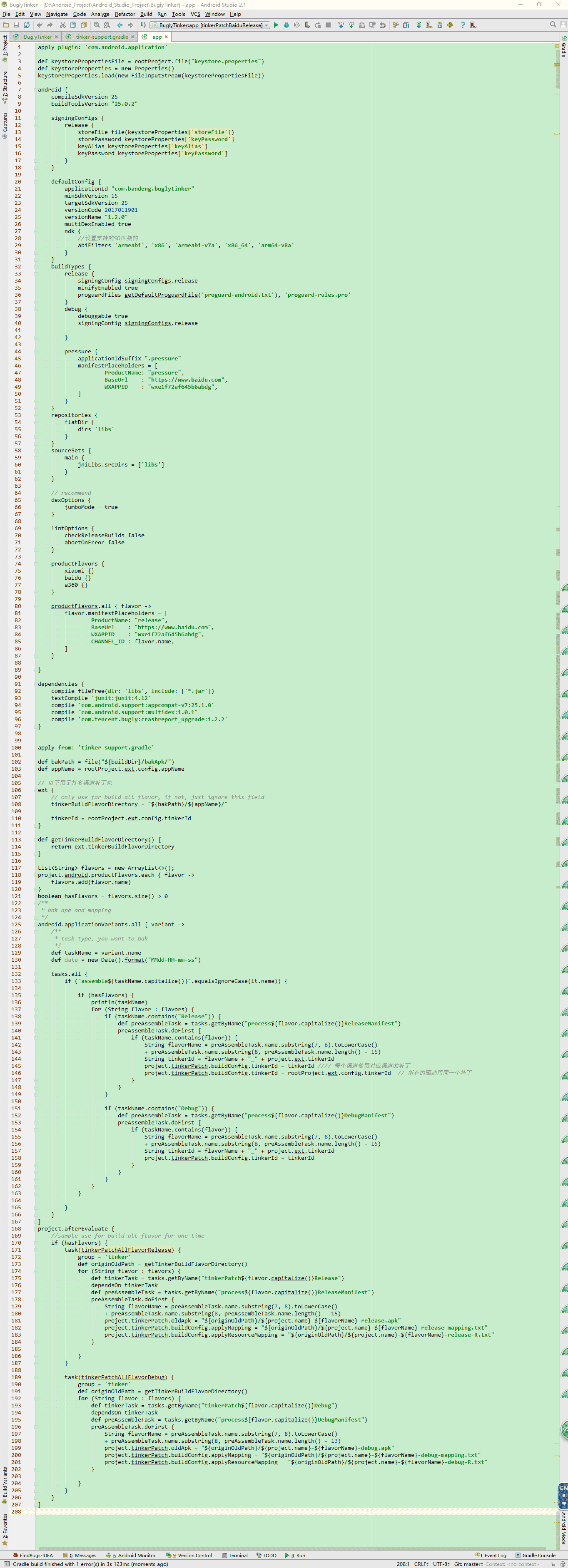 这里要注意,官方给出的project.tinkerPatch.oldApk、project.tinkerPatch.buildConfig.applyMapping、project.tinkerPatch.buildConfig.applyResourceMapping三个配置路径有错误,tinker 1.7.6也存在多渠道打包有bug(和官方沟通后证实了这一点)
