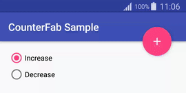 该库是一个FloatingActionButton子类,显示右上角的计数器徽章。 您可以从Google Play下载演示应用程序。