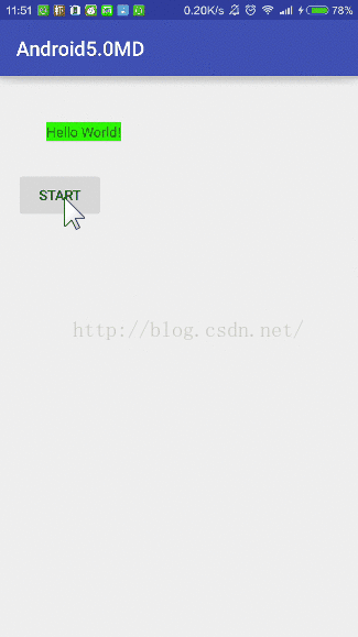 可能这个Gif动画还不太清晰,我再来解释一下,在MainActivity和Main2Activity里边都有一个Button,只不过一个大一个小,从MainActivity跳转到Main2Activity时,我并没有感觉到Activity的跳转,只是觉得好像第一个页面的Button放大了,同理,当我从第二个页面回到第一个页面时,也好像Button变小了。OK,这就是我们的Activity共享元素。