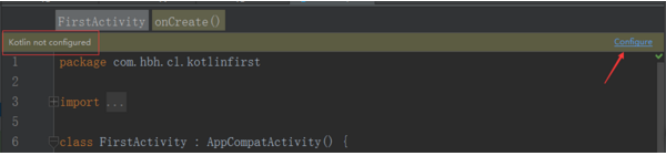 第二步:配置Kotlin第一次创建Kotlin Activity,会提示 Kotlin not configured,我们直接点configure,如图: