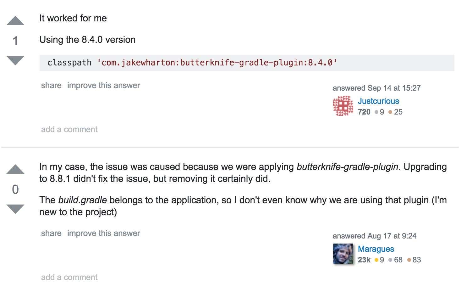 解决方案1:把项目中依赖的ButterKnife降级到8.4.0