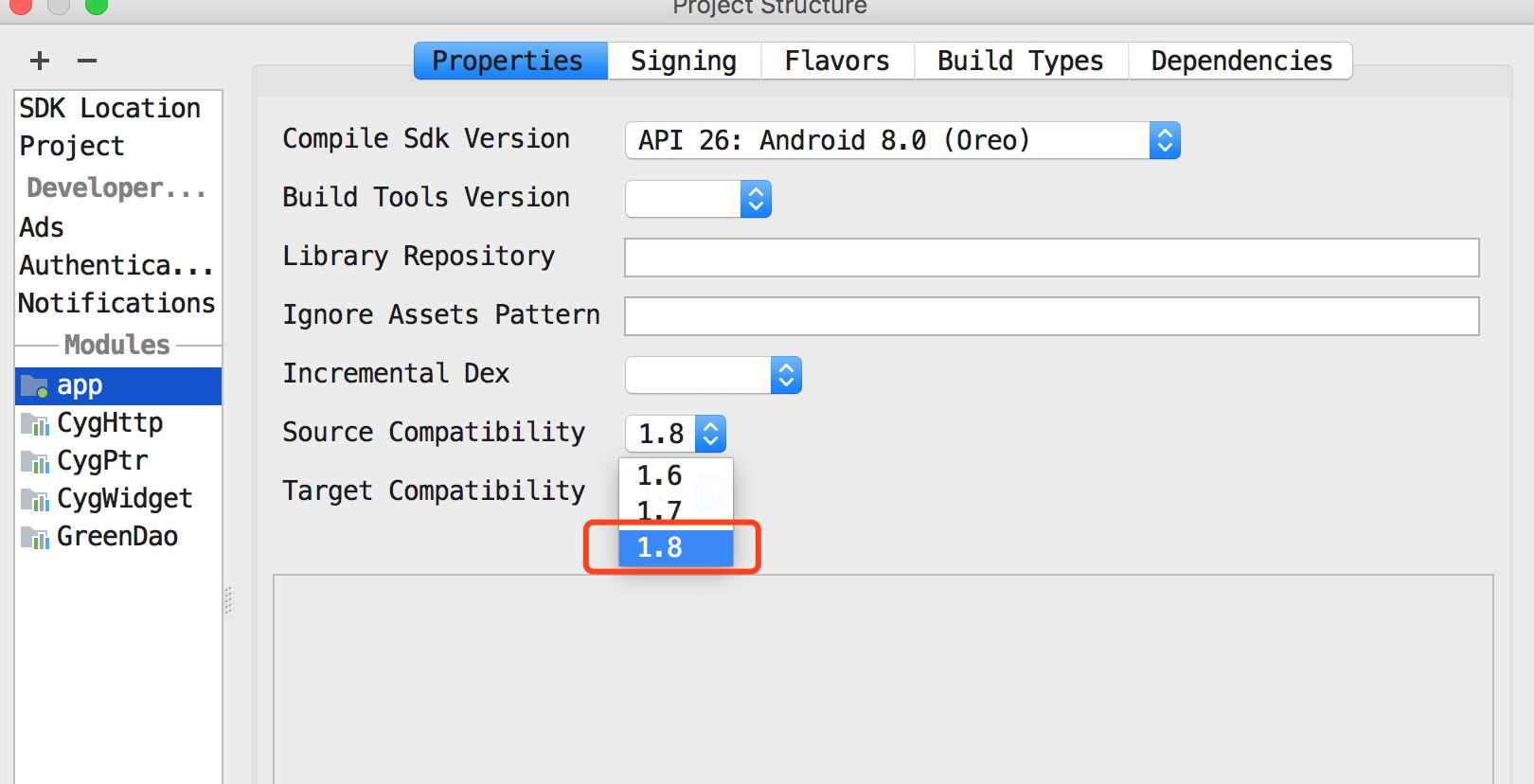同样,喜欢写lambda的同学也有福利了,这次AS的改版支持了Java8,可以直接将Java代码格式成lambda格式的,但是你得给你的项目设置成支持Java8,右键你的module,选择open Module Settings,进去之后按照如下设置就可以了:
