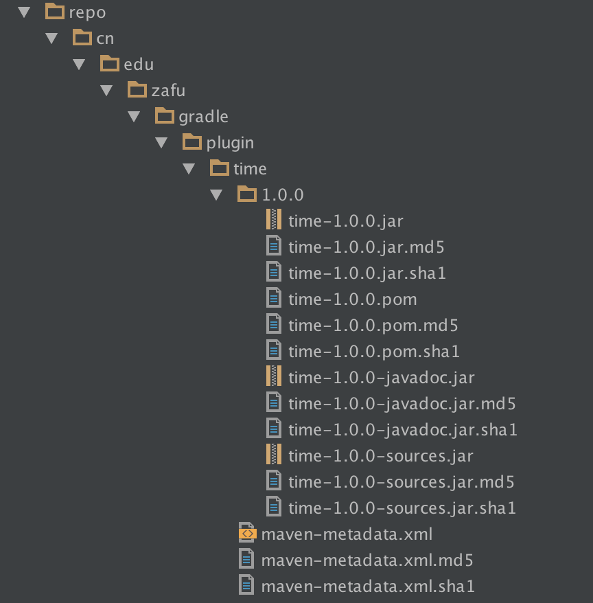 上面的group和version的定义会被使用,作为maven库的坐标的一部分,group会被作为坐标的groupId,version会被作为坐标的version,而坐标的artifactId组成即module名,我们让其取一个别名moduleName。然后maven本地仓库的目录就是当前项目目录下的repo目录。