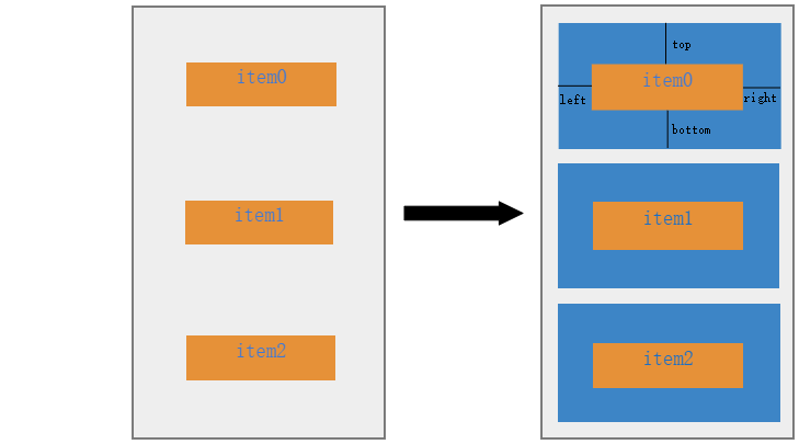 其中left、top、right、bottom就是ItemView在四个方向的偏移量,对应的设置代码如下: