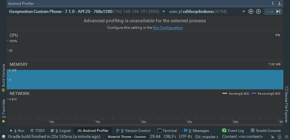 还记得我之前写过一篇文章《Android 使用RxLifecycle解决RxJava内存泄漏》,本文将以这篇文章里的Demo为例,使用Android Studio 3.0再次分析一下内存泄漏。