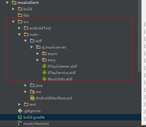 直接在 src/main 目录下新建 aidl 文件夹,并将我们的 aidl 文件放到该目录下。因为 AndroidStudio 默认的 aidl 文件默认配置是这样的。