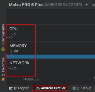 Android Profiler提供了CPU、Memory和network等三个调试分析工具。