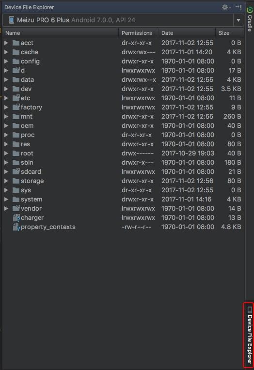 在Android Studio 3.0主界面的右下角,点开"Device File Explorer",可访问当前连接设备的文件。