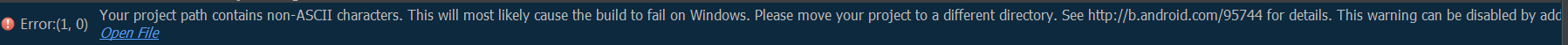 这里讲一个小坑,可能有人的项目路径中包含汉字的文件夹,然后as会提示下图: