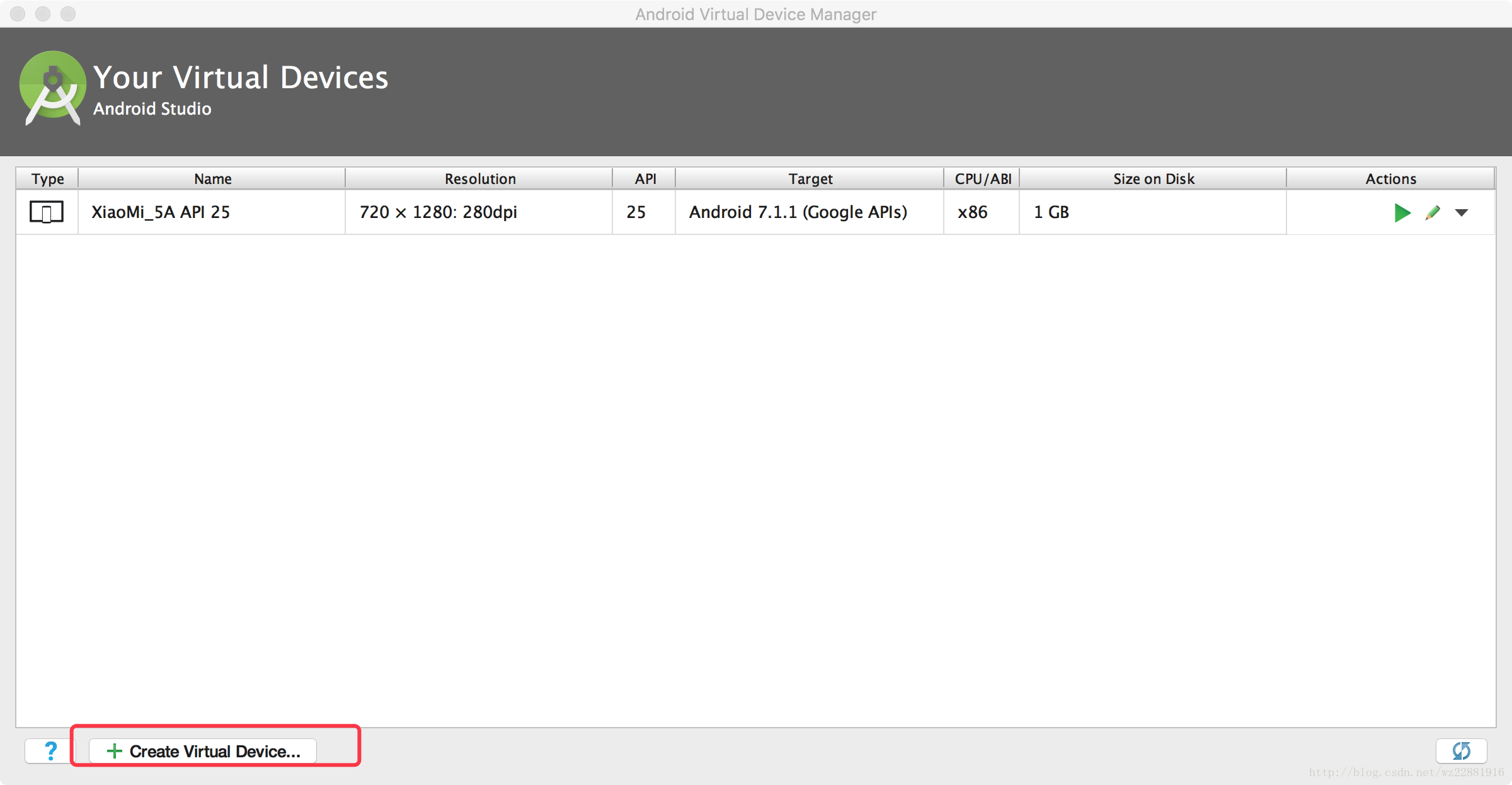 ①点击按钮创建新的AVD
