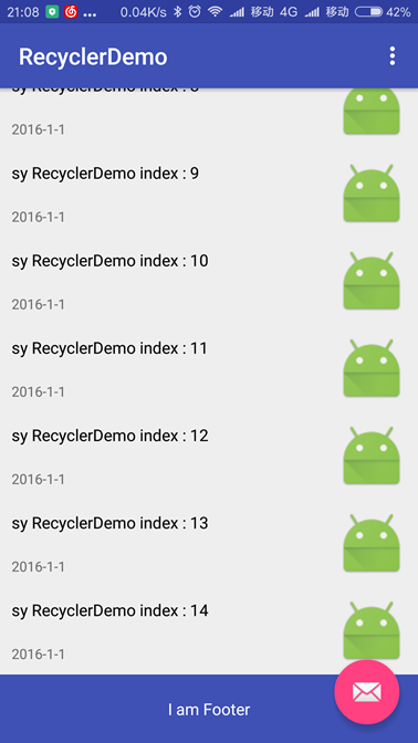三、RecyclerView的头部与尾部实现