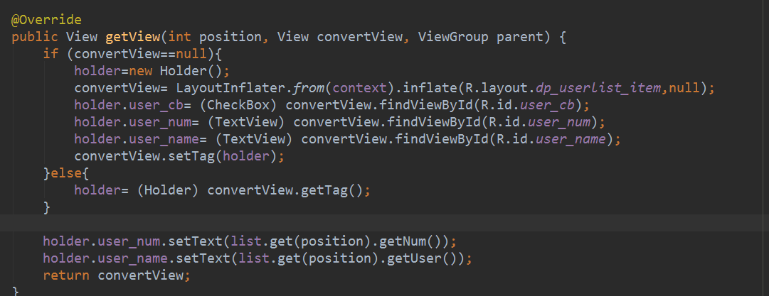 首先ListView与RecyclerView两者非常相似,两者提供view都是依赖适配器。只不过就是5.0版本推出RecyclerView后,Google将adapter和viewHolder做了一系列的优化和封装。不像之前为了复用Listview里面的converView,要类似在getView里面实现下列的代码: