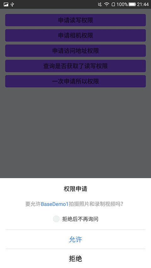 'never_ask_again' : 永久性拒绝下次再请求用户也看不到了,尴不尴尬