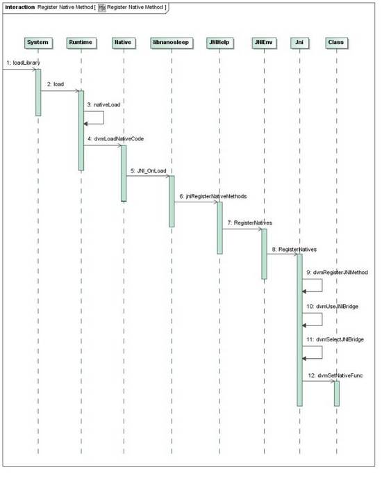 Android虚拟机会在首次调用JNI函数时按照JNI规范的命名规则自动查找。通过分析Android代码,这种方法最终也会调用到上图中的dvmSetNativeFunc等函数,将函数地址保存到虚拟机中供下次调用。