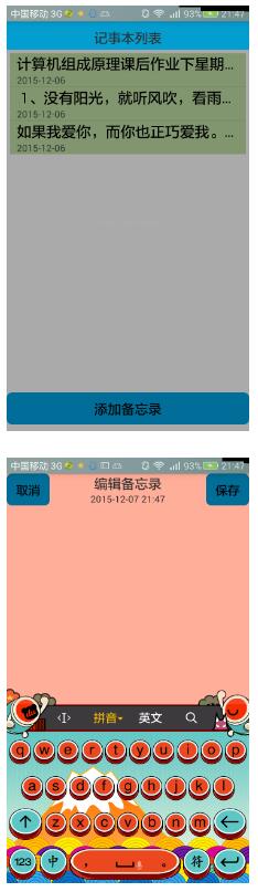 自己写的一个简单的记事本app,效果如下:
