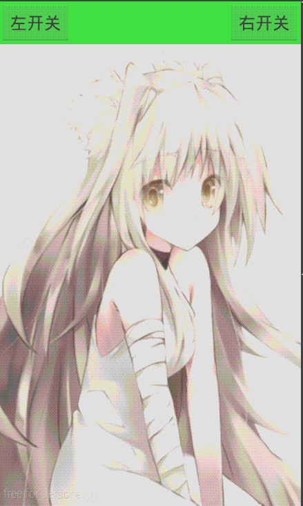 <LinearLayout xmlns:android="http://schemas.android.com/apk/res/android" android:orientation="vertical" xmlns:tools="http://schemas.android.com/tools" android:layout_width="match_parent" android:layout_height="match_parent"> <RelativeLayout android:layout_width="fill_parent" android:layout_height="45dp" android:background="#00ff00" > <Button android:id="@+id/btn_toggle_left" android:layout_width="wrap_content" android:layout_height="50dp" android:text="左开关" /> <Button android:layout_alignParentRight="true" android:id="@+id/btn_toggle_right" android:layout_width="wrap_content" android:layout_height="50dp" android:text="右开关" /> </RelativeLayout> <android.support.v4.widget.DrawerLayout android:id="@+id/drawerlayout" android:layout_width="fill_parent" android:layout_height="fill_parent" > <!-- 主布局,位于DrawerLayout的第一次子控件,位置不可以放错 --> <FrameLayout android:layout_width="fill_parent" android:layout_height="fill_parent" > <ImageView android:layout_width="fill_parent" android:layout_height="fill_parent" android:background="@drawable/mainbackground" /> </FrameLayout> <!-- 左侧菜单 --> <RelativeLayout android:id="@+id/layout_menu_left" android:layout_gravity="start" android:layout_width="150dp" android:layout_height="fill_parent" android:background="#000" > <TextView android:textColor="#ffffff" android:gravity="center" android:layout_width="fill_parent" android:layout_height="fill_parent" android:text="左侧菜单" /> </RelativeLayout> <!-- 右侧菜单 --> <RelativeLayout android:id="@+id/layout_menu_right" android:layout_gravity="end" android:layout_width="150dp" android:layout_height="fill_parent" android:background="#000" > <TextView android:textColor="#ffffff" android:gravity="center" android:layout_width="fill_parent" android:layout_height="fill_parent" android:text="右侧菜单" /> </RelativeLayout> </android.support.v4.widget.DrawerLayout> </LinearLayout>