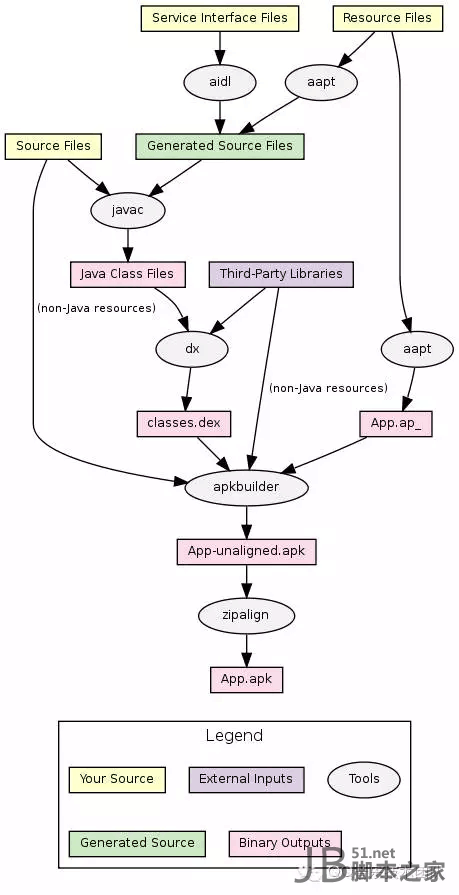 当项目中包含aidl时,会先调用aidl工具生成java代码;renderscript亦然,需要先调用llvm-rs-cc,只是它不仅会自动生成java文件,还会产生相应的.bc文件,.bc文件将打包到apk中