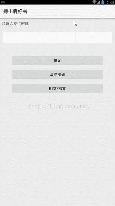 老规矩,先看效果;这是现在商城类app中很常见的支付密码效果,首先说下这个不是自定义控件,是github上的开源库;