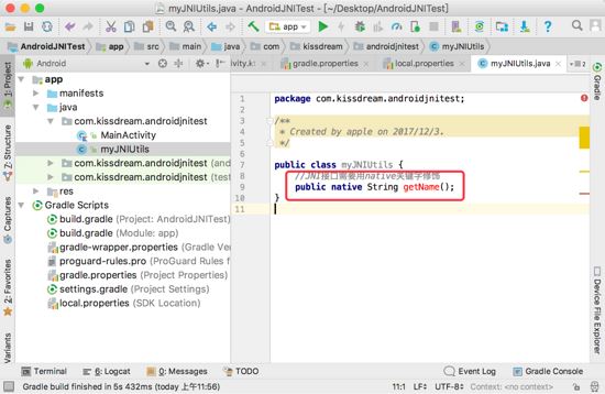 引入.h文件#include "com_kissdream_androidjnitest_myJNIUtils.h"