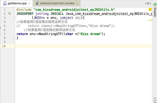 JNIEXPORT jstring JNICALL Java_com_kissdream_androidjnitest_myJNIUtils_getName