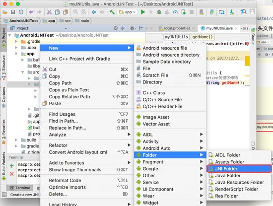 -我们在main下新建一个jni文件夹,如图:
