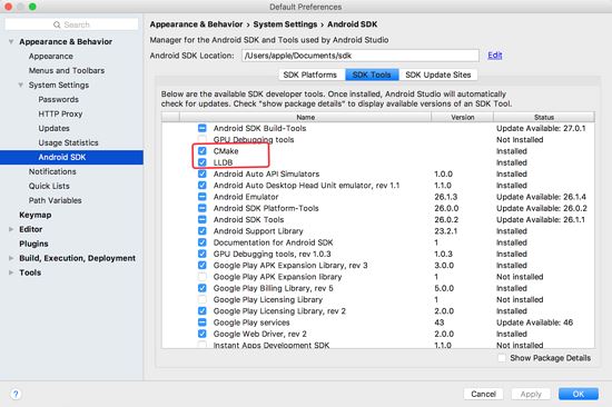 先通过SDKManager下载:CMake和LLDB