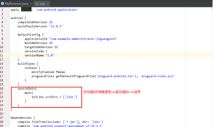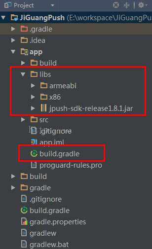 1,android studio如何加载极光推送的jar包和.so库文件.