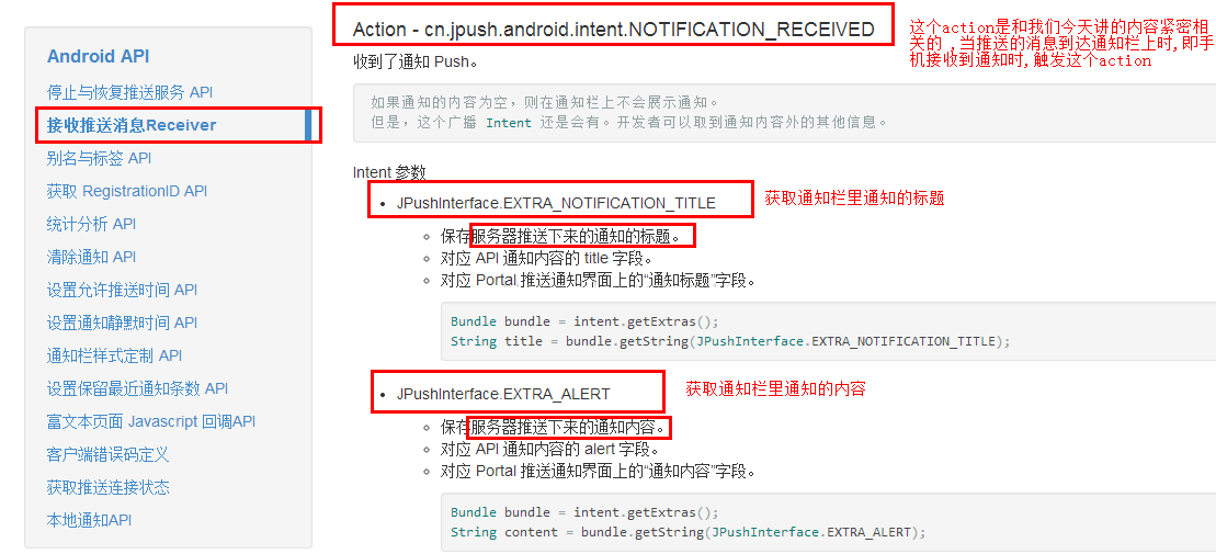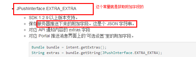 2,如何获取附加字段里的键对应的值.打开极光推送官方文档.如下图: