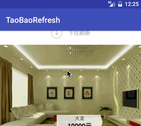 目前下拉刷新的样式是多饰多样,今天我们一起来自定义淘宝下拉刷新,其实淘宝下拉刷新比较的简单就是一个圆环和一个小箭头的显示和隐藏,那么先看看我们的实现的效果。