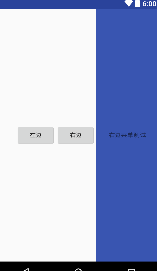<?xml version="1.0" encoding="utf-8"?> <android.support.v4.widget.DrawerLayout xmlns:android="http://schemas.android.com/apk/res/android" android:id="@+id/main_drawer_layout" android:layout_width="match_parent" android:layout_height="match_parent" android:background="@android:color/transparent"> <!-- 下面显示的主要是主界面内容 --> <RelativeLayout android:id="@+id/main_content_frame_parent" android:layout_width="match_parent" android:layout_height="match_parent" android:background="@android:color/transparent" android:gravity="center"> <Button android:layout_width="wrap_content" android:layout_height="wrap_content" android:layout_gravity="center" android:onClick="openLeftLayout" android:text="左边" /> <Button android:layout_width="wrap_content" android:layout_height="wrap_content" android:layout_gravity="center" android:layout_marginLeft="100dp" android:onClick="openRightLayout" android:text="右边" /> </RelativeLayout> <!-- 左侧滑动栏 --> <RelativeLayout android:id="@+id/main_left_drawer_layout" android:layout_width="240dp" android:layout_height="match_parent" android:layout_gravity="start" android:background="@color/colorPrimary" android:paddingTop="50dp"> <TextView android:layout_width="wrap_content" android:layout_height="wrap_content" android:layout_centerInParent="true" android:text="左边菜单测试" /> </RelativeLayout> <!-- 右侧滑动栏 --> <RelativeLayout android:id="@+id/main_right_drawer_layout" android:layout_width="240dp" android:layout_height="match_parent" android:layout_gravity="end" android:background="@color/colorPrimary" android:paddingTop="50dp"> <TextView android:layout_width="wrap_content" android:layout_height="wrap_content" android:layout_centerInParent="true" android:text="右边菜单测试" /> </RelativeLayout> </android.support.v4.widget.DrawerLayout>