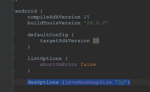 dexOptions {javaMaxHeapSize "2g"}