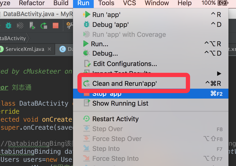 我们可以看到加载布局方法还是setContentView,只是对象变了,DatabindingBinding这个类是不是很熟悉,它就是我们之前创建databinding.xml的时候自动创建的类,生成模式是xml文件名字(首字母大写)+Binding。