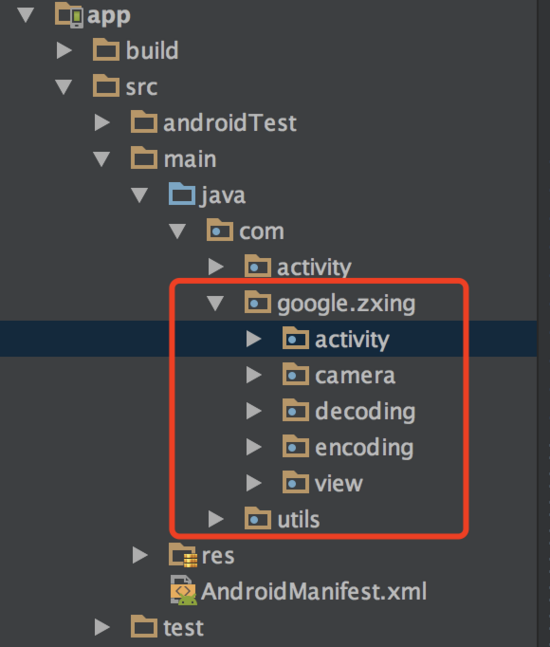 //com.google替换成自己项目的包名即可 com.google.zxing.activity.CaptureActivity com.google.zxing.decoding.CaptureActivityHandler com.google.zxing.decoding.DecodeHandler com.google.zxing.view.ViewfinderView