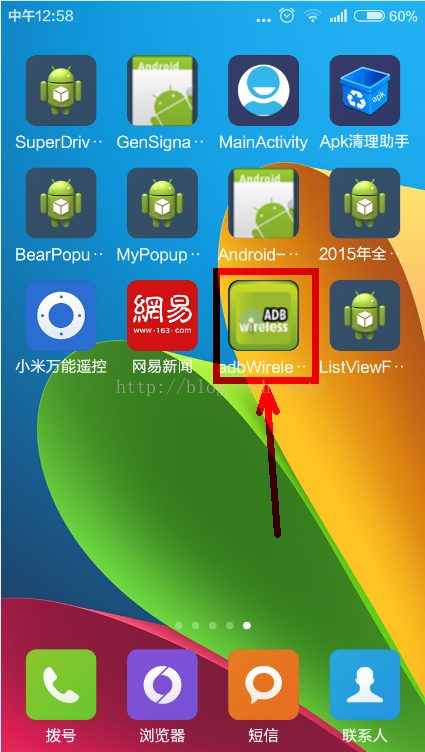1.关键的东东是需要在你的android手机上安装一个神奇的软件:Adb Wireless