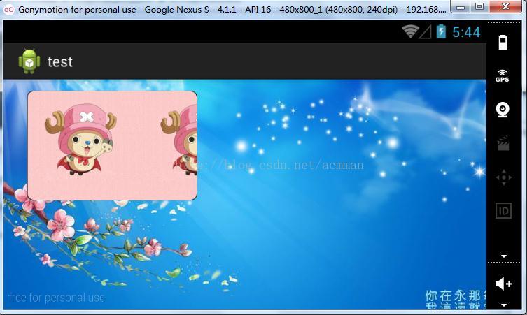 在onDraw(Canvas canvas)方法中,首先定义一个画笔,并设置其使用抗锯齿功能,然后定义一张背景,然后定义一个要绘制的圆角矩形的区域,并将画布在X轴上平移40像素,在Y轴上平移20像素,再绘制一个黑色的2像素的圆角矩形,作为图片的边,最后绘制一个使用BitmapShader渲染的圆角矩形图片,具体代码如下: