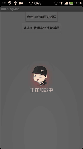 写好之后我们来看自定义一个对话框,来实现打开对话框时,自动加载奔跑的动画。见代码: