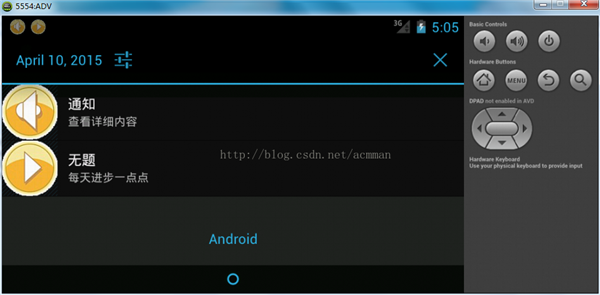 notify.setLatestEventInfo(MainActivity.this, "无题", "每天进步一点点", null);//设置事件信息