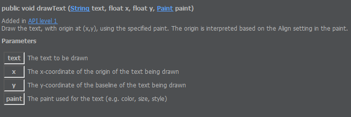 之所以drawText()方法中x,y指的是基线中间的那个点,是因为setTextAlign(Paint.Align.Center)