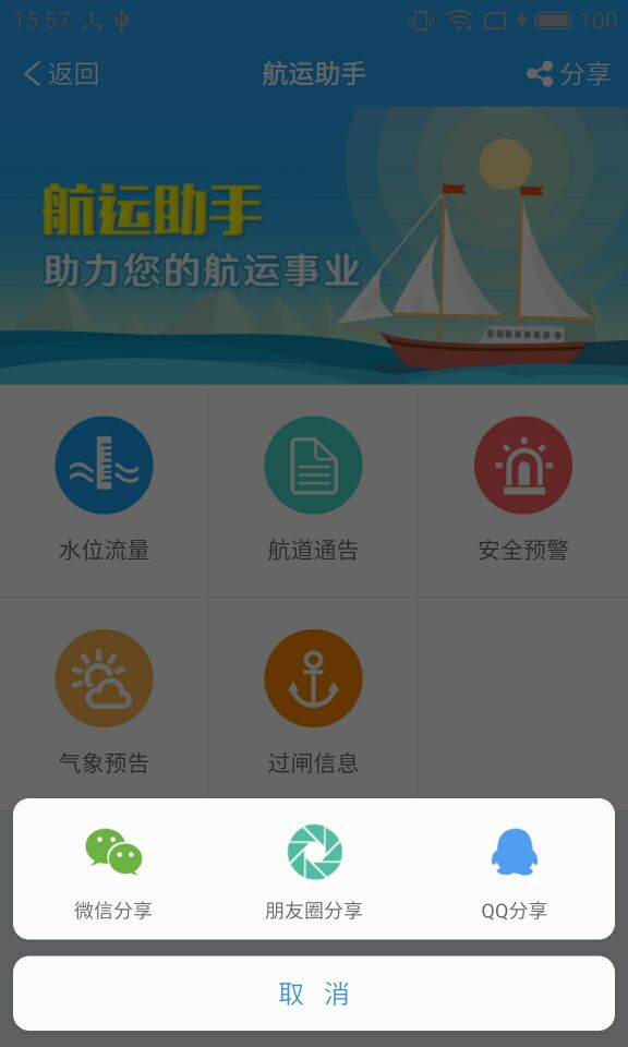 我们在导航栏中只需要如此调用即可实现分享功能: