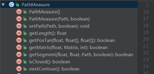 PathMeasure,顾名思义,就是一个用来测量Path的类,主要有以下方法: