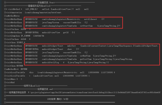 methodVisitor.visitMethodInsn(INVOKESTATIC, "com/xishuang/plugintest/TimeCache", "getCostTime", "(Ljava/lang/String;)Ljava/lang/String;", false)