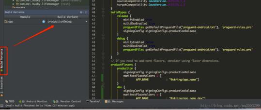 所有Build Variant - productionDebug //正式版本的debug包 - productionRelease //正式版本的Release包 - devDebug //开发版本的debug包 - devRelease //开发版本的Release包