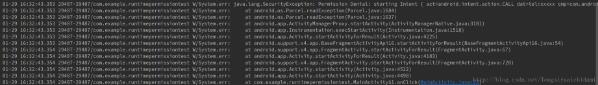 错误信息中提示我们Permission Denial,可以看出,是由于权限被禁止所导致的,因为6.0及以上系统在使用危险权限时都必须进行运行时权限处理。