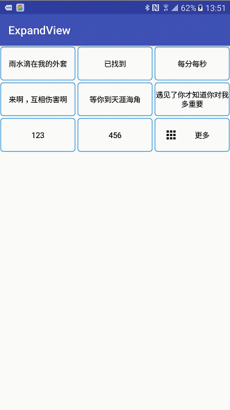 控件支持直接代码创建,还有更多API请观看 ExpandView.java 内的注释说明。